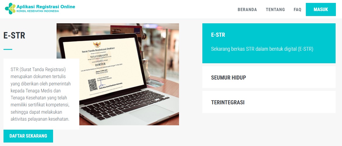 Pendaftaran Surat Tanda Registrasi (STR) dan persyaratan pendaftaran dapat di akses melalui: https://kki.go.id/registrasi/